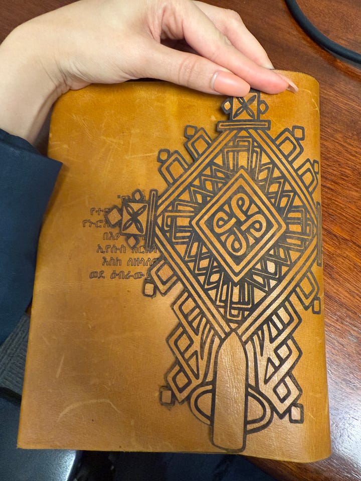 The ‘New Jerusalem’ at Lalibela. So legend has it King Lalibela (13th century) wanted to create a Christian pilgrimage site that could serve as a substitute for Jerusalem, especially after the Crusaders captured the Holy Land, making it difficult for Ethiopian Christians to travel there. And so, gigantic monolithic churches were carved out on the mountainside in actual rock. This is Lalibela today. One of the characteristic features of the Lalibela is a distinct cross, also called the ‘Ethiopian Cross’. Its cross shaped, with added filligree and symetrical patterns on metal making it a unique art piece, or design element imprinted on books/clothes/merchandise. I remember picking some up, and they distinctly remind me of Ethiopia