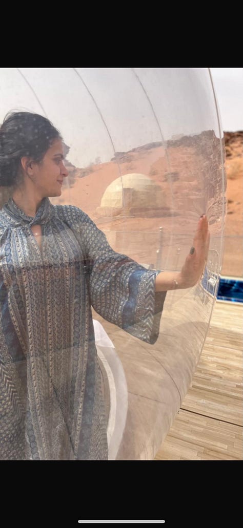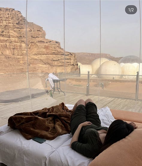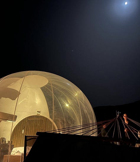 I stayed at Luxotel Wadi Rum with a group of my college friends, enjoying the experience and even playing a little trick on my friend by pretending to trap them inside the bubble (the bubble has a two-door entryway to maintain temperature, and opening both doors at the same time can cause the bubble to appear to collapse). Wadi Rum also attracts the adventurous for rock climbing, quad biking, jeep tours and camel treks- all of which can be found in plenty in the desert