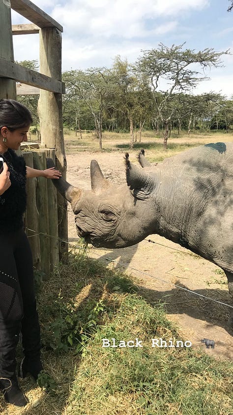 In the northern regions, particularly in Samburu, you can encounter both black and white rhinos. A memorable experience for me was meeting a blind rhino named Barrack, whom I got to pet and hug up-close!. Interestingly, many establishments and even animals are named "Barrack," reflecting the historical ties of former U.S. President Barack Obama with Kenya? or consumer brands driving mileage?