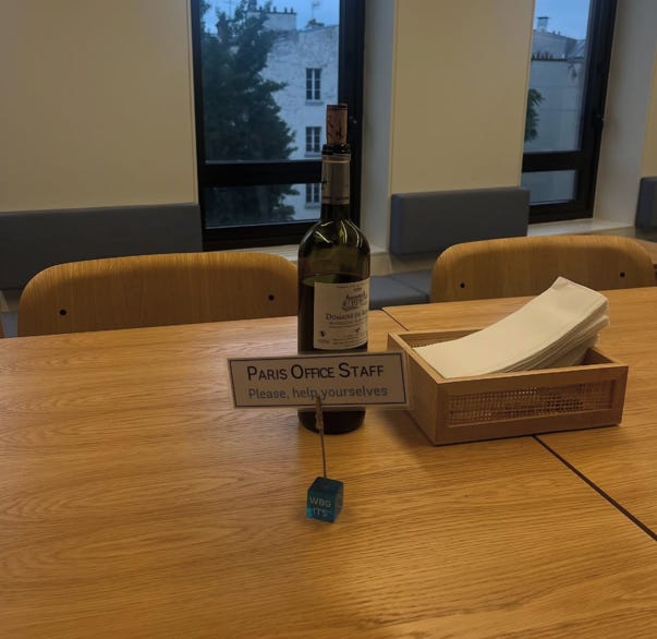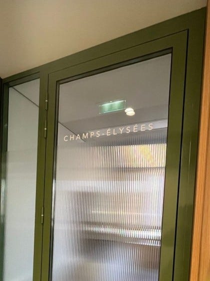 ‘Suitcases and Spreadsheets’ at Champs de Lysse. My office was on Avenue des Champs-Élysées. I’d take the metro to George V, then walk about 10 minutes. The most unforgettable sight on that walk was the giant LVMH silver suitcase—basically the size of a building, always crowded with tourists snapping photos. Originally, it was just scaffolding covering construction for LVMH’s hotel, expected to open in early 2026. If the hotel’s exterior isn’t suitcase-themed, this quirky landmark will be missed. Most of my time was spent in the office, especially in meeting rooms named after Paris streets—like Champs-Élysées, where I’d spend hours in meetings or crunching spreadsheets. That room is where the idea for this travelogue first took shape