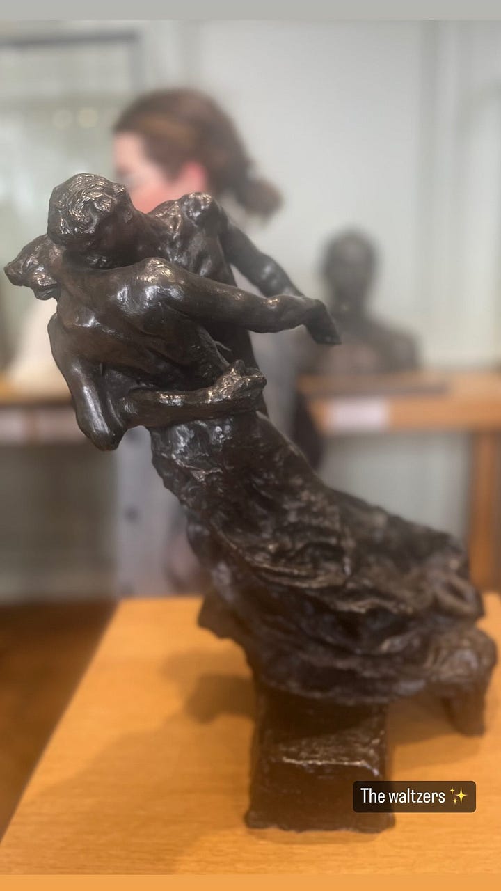 Musee Rodin, Camile's The Waltz, and Rodin's The Kiss, and my Le Peitit Reine