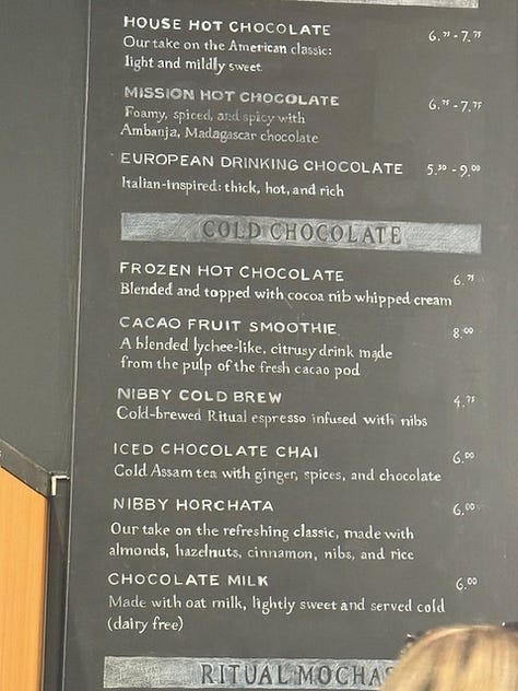 The quieter and, in my opinion, far better chocolate in California is Dandelion. It’s a local chocolatier that makes seriously good bars, and arguably the best hot chocolate I’ve had in the States. I’ve lived in Paris and had the OG chocolat chaud, and I’ll stand by this: Dandelion’s “European hot chocolate” is the closest I’ve found stateside. Second only to the Parisian (and some Italian) versions.